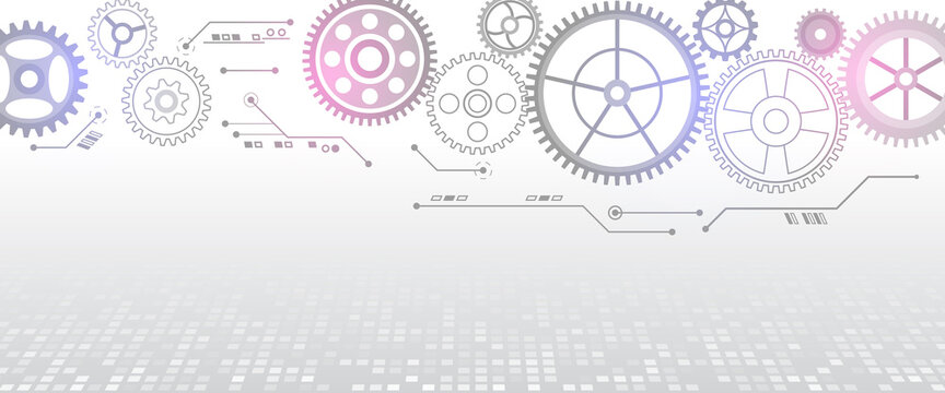 Futuristic cogwheels movement illustration. Vector cogwheels modern mechanism. Industrial concept. Hi tech made of gears background.