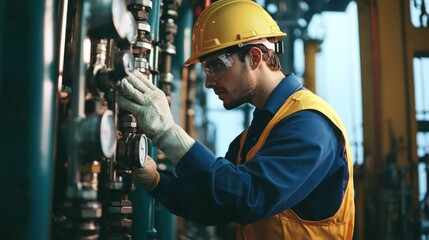Industrialist Businessman with Glasses and Beard in Business Attire at Oil Refinery with Gas Lamps
