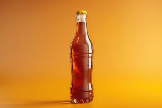 A single serving of soda on a bright yellow background, ideal for advertisements or promotions