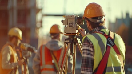 Professional engineers inspecting architectural plans