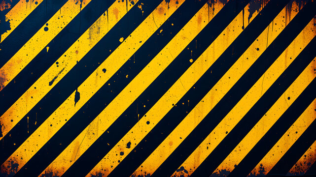 Grungy yellow and black metal background with diagonal stripes ideal for caution or hazard signs. Generative AI
