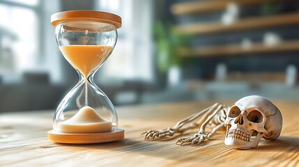 The sand of time pours endlessly through the hourglass, symbolizing the fleeting nature of life and the inevitable march towards death