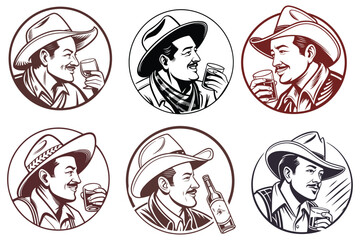 logo con el rostro de actor y cantante pedro infante line art vector design
