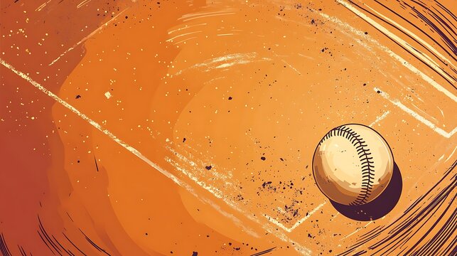 A baseball rests on a dirt infield with a faded chalk line visible, a comic book style illustration.