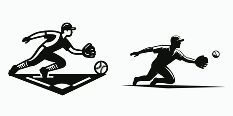 A Baseball fielder ground ball. Sports Activity Playing Game Athlete Competition Clipart Line Art Vector Illustration. catching batted on the infield during.