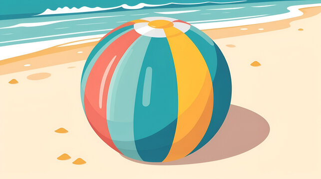Vibrant inflatable beach ball on white background, a summer essential for fun and recreation