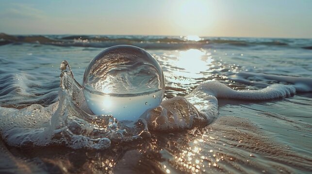beach waves moving a ball