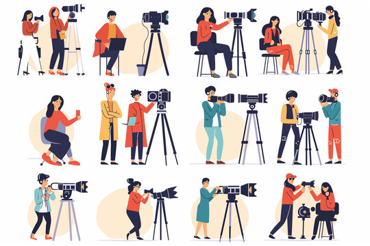 Carpenter using camcorder in workshop. Caucasian male craftsperson with camera, recording DIY tutorial.