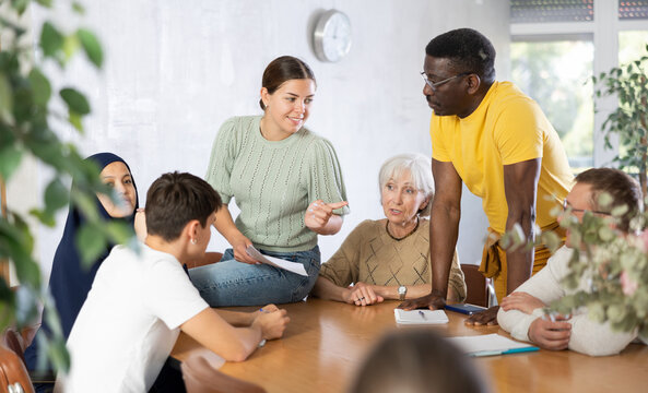 Young Man And Woman Are Working On A Computer While Discussing A Project