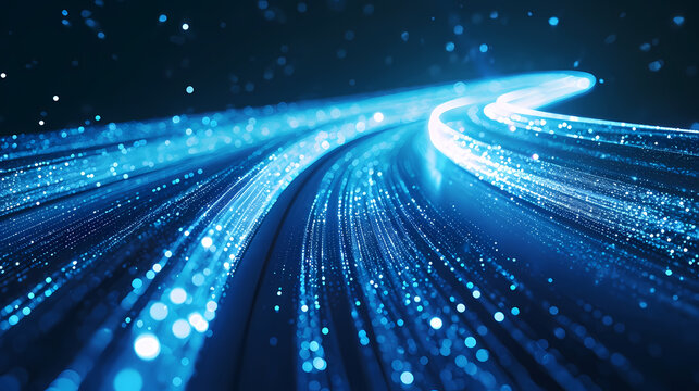 Glowing Blue Fiber Optic Cables: High-Speed Internet Connectivity, Data Flow & Modern Communication Technology Background