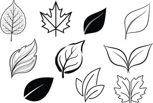 A collection of various leaf silhouettes in different shapes and sizes showcasing nature's diversity in a simple silhouette style