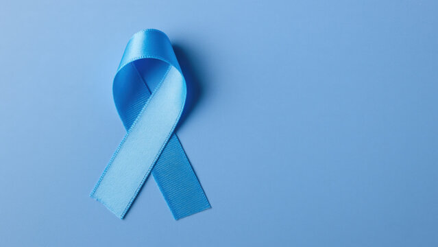 Light blue ribbon on blue for diabetes awareness, created AI