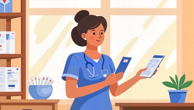 Health risks, prevention, and environment, environmental health discussion with patient, informative graphics and pamphlets on air quality and health