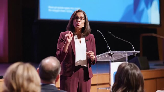 Engaging business conference with keynote speaker at corporate event