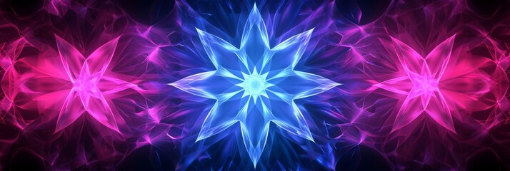 A stunning display featuring mesmerizing blue and pink abstract floral designs infused with radiant glowing effects