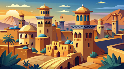 Windcatcher towers rise above earthen alleys, domed rooftops blend with desert skies, and ingenious aqueducts sustain an oasis city shaped by tradition and endurance.