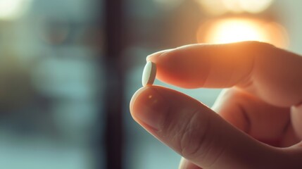 woman's hands delicately extracting a pill from a bottle, reflecting health and wellness choices