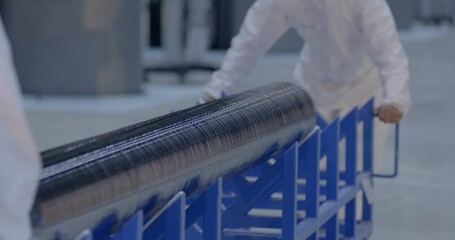 Silicon crystal and ingot used for solar panel cell is taken to processing. Factory that produces panels for solar energy. Clean energy