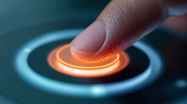 Finger touches a virtual button to initiate a registration process