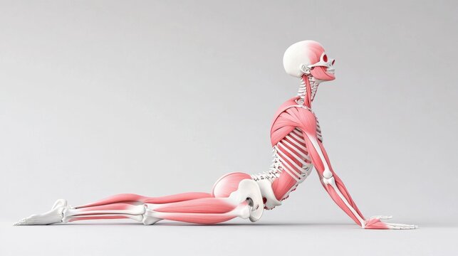 3D Rendering of Human Skeleton in Yoga Pose Showing Detailed Musculoskeletal disorders are injuries or pain