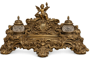 Gold Inkwell icon isolated on yellow background. Silver square button. 3D render illustration