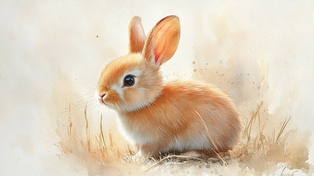 Adorable fluffy rabbit in soft hues, nestled in grass, capturing the essence of innocence and nature's beauty.