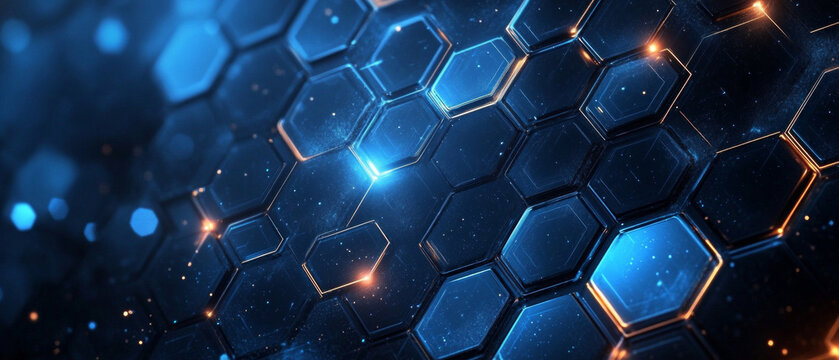 A luminous network of geometric shapes creates a futuristic atmosphere for digital presentations, suitable as an innovative backdrop at technology exhibitions.