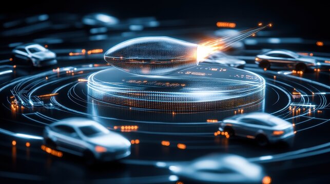 Autonomous future automotive convergence concept showcasing networked vehicles and advanced connectivity with intelligent mobility system