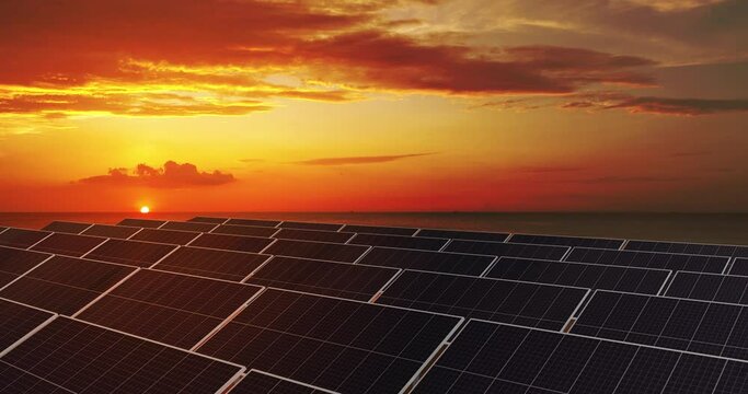 Eco power concept time-lapse video ecology solar power station panels energy at sunset dramatic sky time-lapse in the beach landscape electrical innovation nature environment slow motion Movement