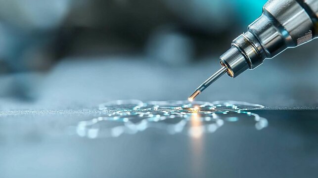 Close-up of precision tool engraving intricate design on metallic surface.
