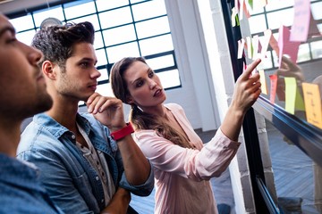 Portrait of curious nosy woman with curly hair spying rumors, looking through fingers with inquisitive expression, shy and scared to watch secret. indoor studio shot isolated on yellow background