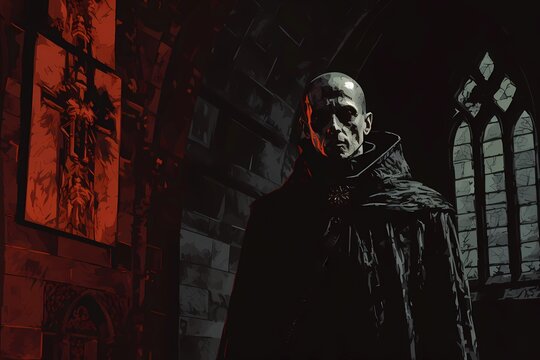 Fantasy background, an inquisitor in a gloomy church