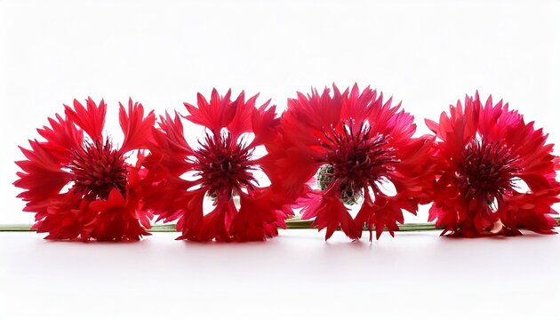 Red Knapweed Flowers In A Line Floral Arrangement Isolated On White Or Transparent Background