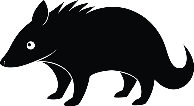 Full Body Black Shape of a Tenrec Walking with Spines