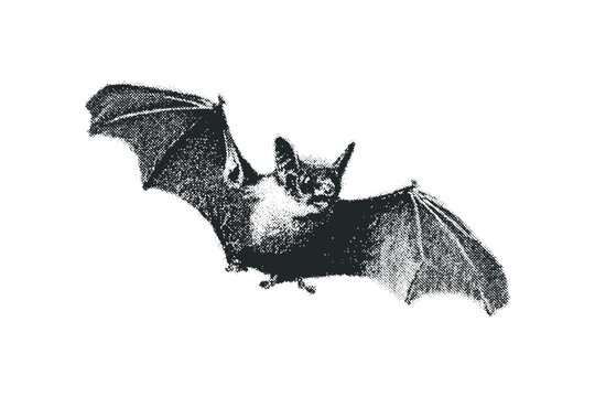 Monochrome Halftone Bat FlyingPNG Image. Vector hand drawn illustration