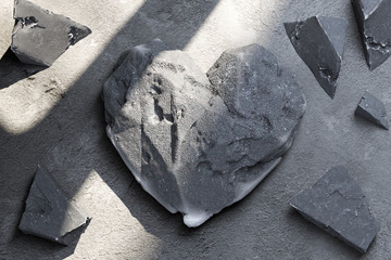 Heart Made Of Concrete Or Stone Near Stone Fragments. 3d Rendering.