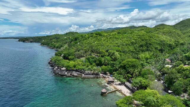 Beach coast Cebu drone Philippines Kalubian aerial sea view beautiful rock mountain landscape tourist place for recreation island and travel inshore waves, people clean water, blue sky love