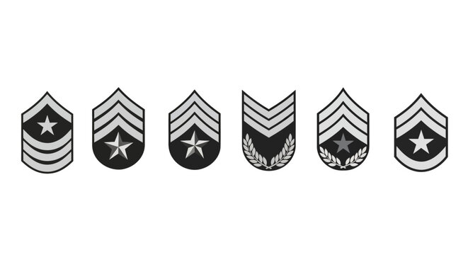 Detailed line-up illustration of various military rank insignia for enlisted personnel