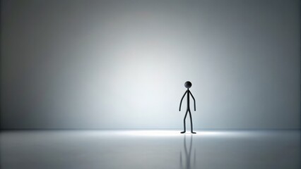 A tiny, isolated figure clings to the edge of a featureless backdrop, a small and insignificant speck of