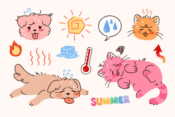 A cat and a dog on a hot summer day. Pets suffering from the heat wave.