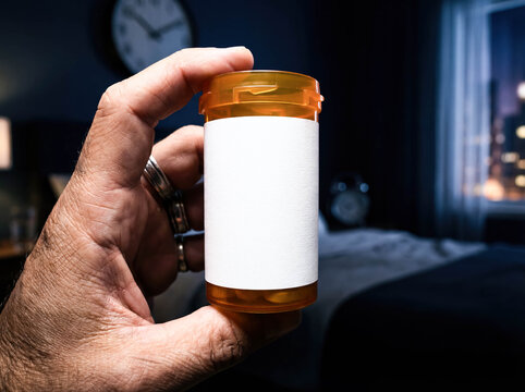 The melatonin supplement bottle promises soothing relief and restful sleep support nearby.