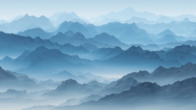 Serene Blue Mountain Landscape with Layered Peaks and Atmospheric Haze in a Tranquil Environment for Nature Lovers and Adventure Seekers