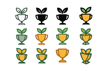 Motivational Trophy Logos. Set Logo of Inspirational quotes and motivational ideas: trophy growing leaves. Logo set in vector style, emblematic variations.