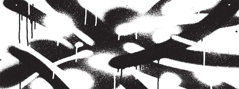 Black and white spray paint splatter forming urban art and graffiti inspired abstract pattern