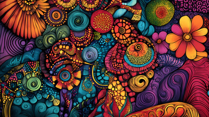 Vintage card design featuring zentangle inspired art showcasing a vibrant array of colors and intricate doodles for a fresh summer aesthetic. Zentangle. Illustration