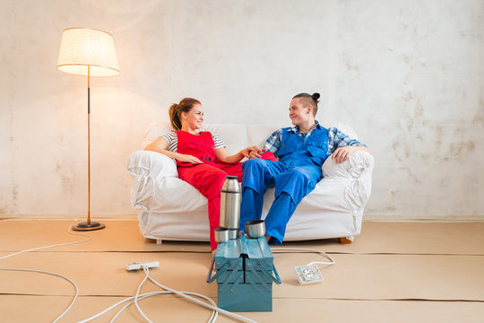 Young couple in the middle of renovation.