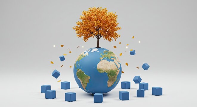 Dynamic 3D rendering of planet Earth with a vibrant tree, perfect for environmental concepts, sustainability, and global awareness campaigns, inspiring hope
