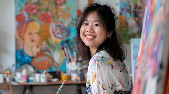 Asian Vibrant Studio Filled with Colorful Art Pieces and Unbridled Passion