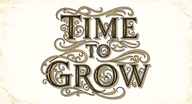 Elegant vintage lettering art with the inspiring message time to grow on a textured background on white background