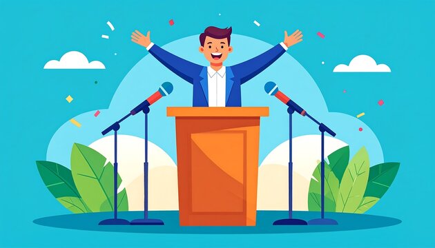 Cinematic close up of confident CEO speaking passionately on stage under dramatic spotlight, elegant suit, inspiring atmosphere, motivational energy, professional event